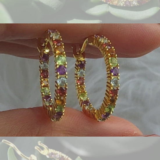 BRAVE - AMETHYST, SKY BLUE TOPAZ, GARNET, CITRINE, PERIDOT GEMSTONE HOOP EARRING IN 925 STERLING SILVER