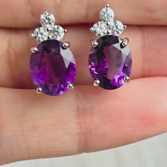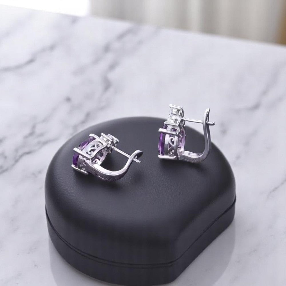 Empress - Natural Amethyst Earrings 925 Sterling Silver Plated in Rhodium