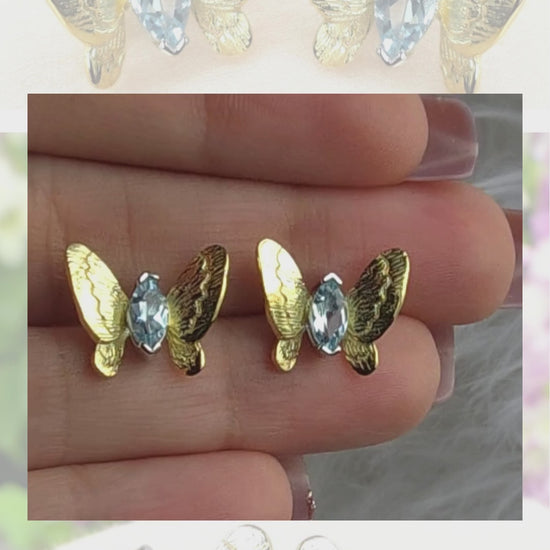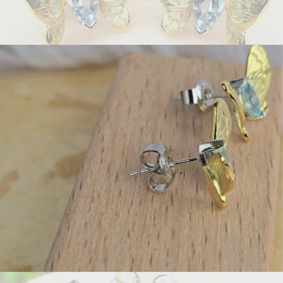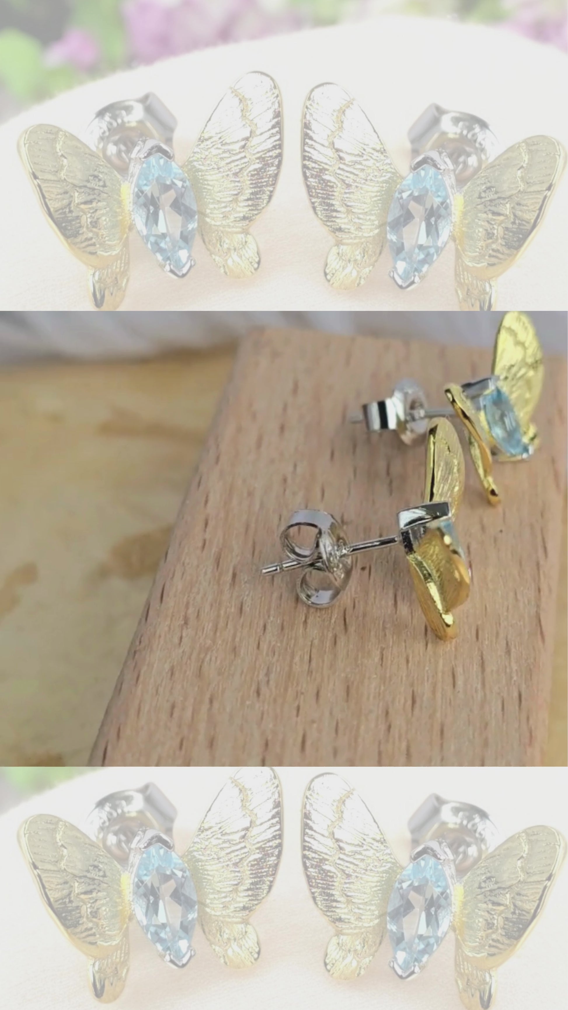 SARAH - NATURAL BLUE TOPAZ GEMSTONE BUTTERFLY EARRING IN 925 STERLING SILVER