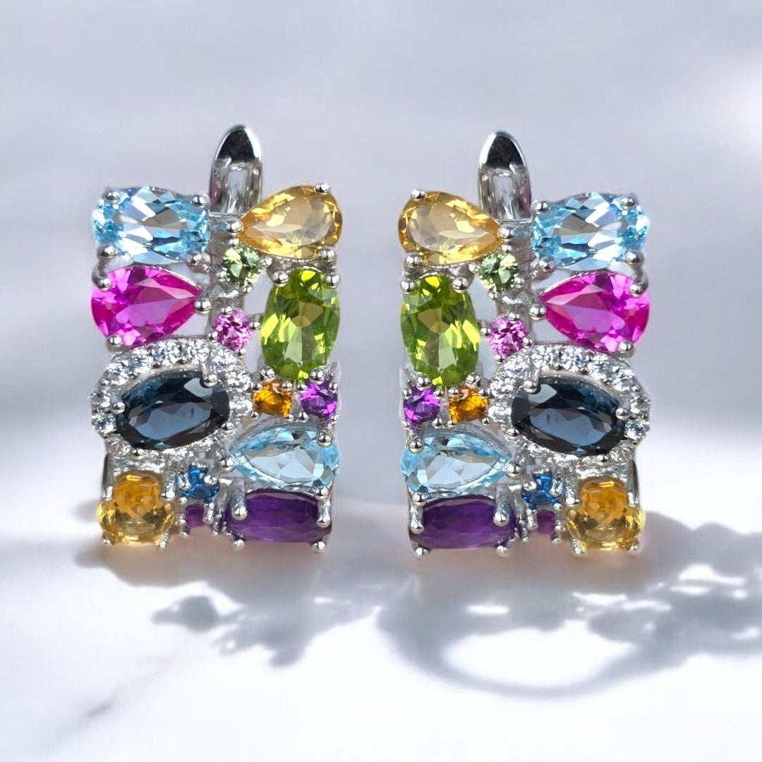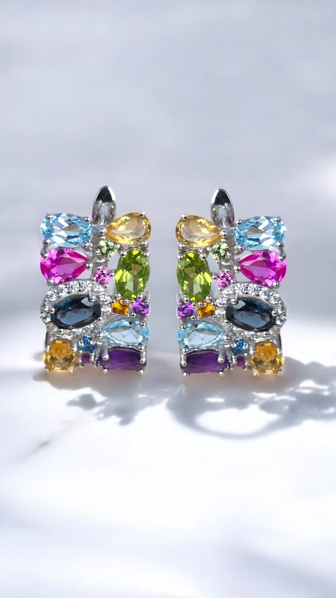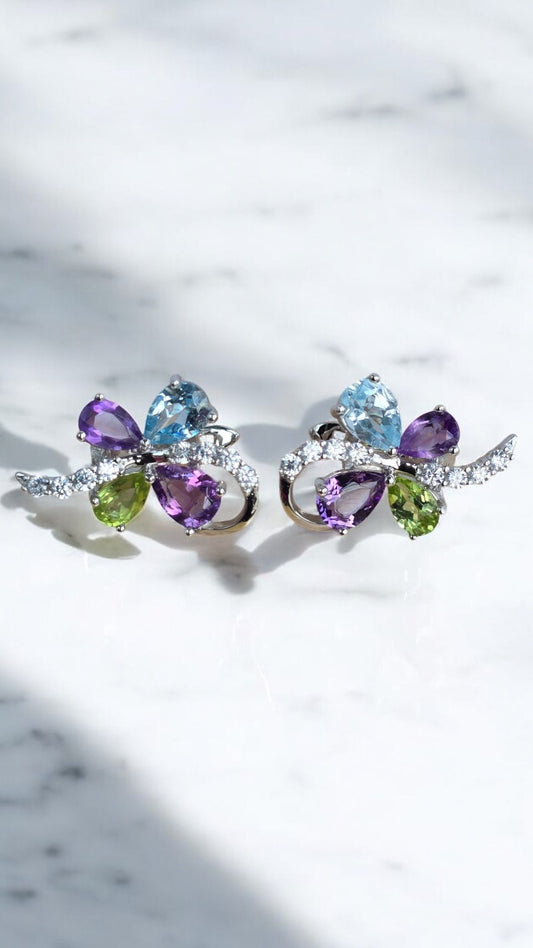 ATHENA – NATURAL AMETHYST PERIDOT AND SKY BLUE TOPAZ GEMSTONER EARRING IN 925 STERLING SILVER