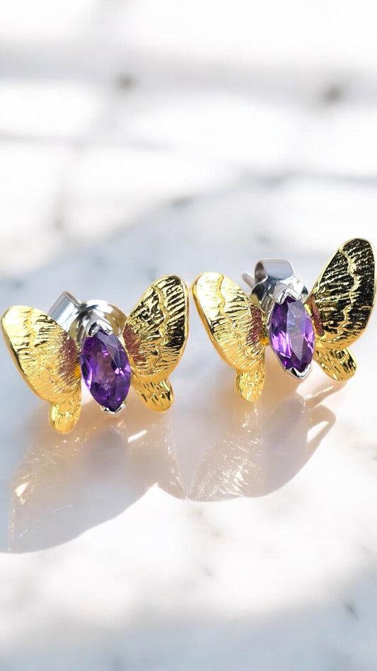 SARAH – NATURAL AMETHYST GEMSTONE BUTTERFLY EARRING IN 925 STERLING SILVER