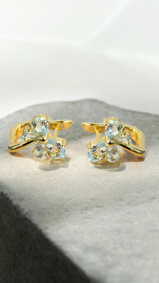 TARA – SKY BLUE TOPAZ GEMSTONE CLUSTER BUTTERFLY EARRINGS IN 925 STERLING SILVER